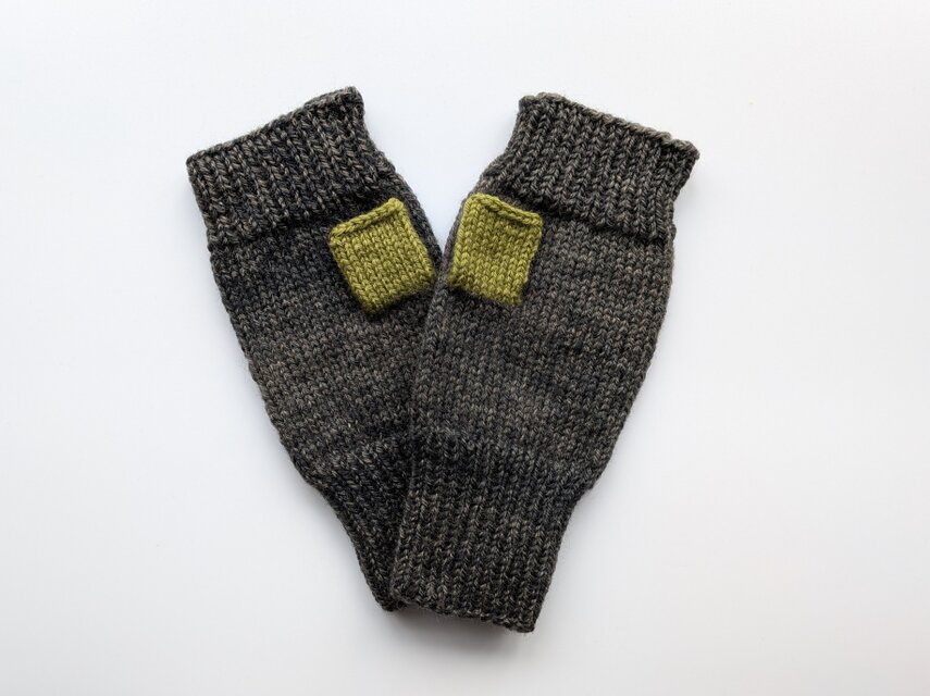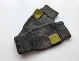 ダークなカーキ3色のミックス糸で編んだハンドウォーマーです。