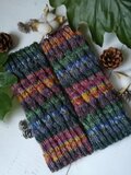 冬の星をちりばめた銀河のような色合いの、手編みの短いスパイラル編みレッグウォーマーです。