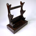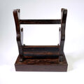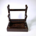 日本の伝統的な調度品であり、時代劇等でもおなじみの刀掛台をイメージした万年筆スタンドです。主材料として銘木中の銘木・本紫檀を用いました。