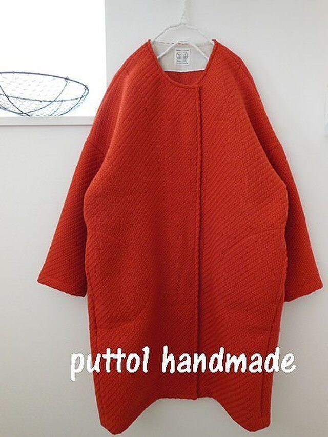 きれいなオレンジのウールで作った一重の裏地なしのコートです。