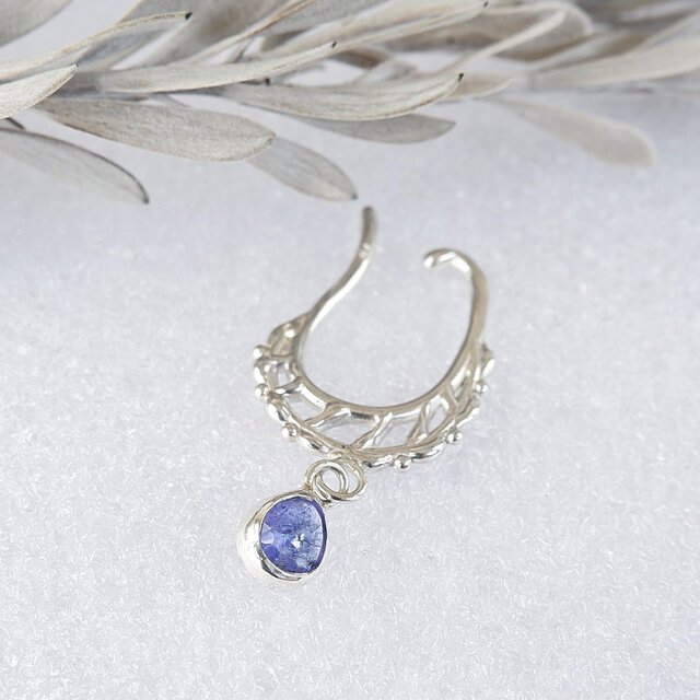 タンザナイトのローズカットをレースのようなデザインのイヤーカフに飾り付けました。