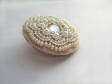 パールビーズと、特小ビーズをお花型に刺繍しております。