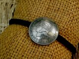 希少なニューカレドニアの20fコインをヘアゴムと芯合わせしコンチョ型に加工した作品です。