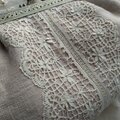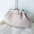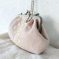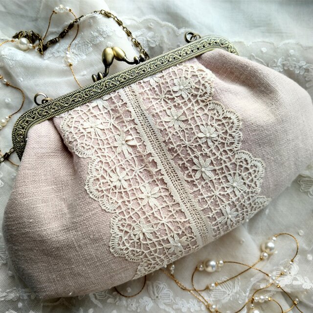 エクリュリネンにアンティークレースをのせたがま口バッグです