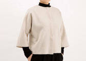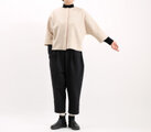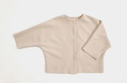 暖かみのあるベージュの圧縮ニットで軽く羽織れるカーディガンを作りました。