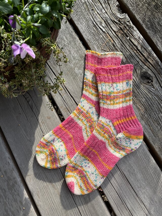 ドイツのOpal糸で一針一針、丁寧に編みました。