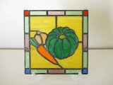 カボチャやニンジンが並ぶ、カラフルな野菜モチーフのステンドグラス ミニパネルです。