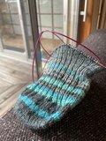 ちなみに竹串か?!ってくらい細い針で編んでるので意外と薄いです。普通の靴下と同じように履けますよ♪