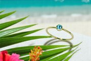 まるで夏空のように澄んだ「ライトターコイズ」のクリスタルガラスをあしらった、繊細で上品なリングです。