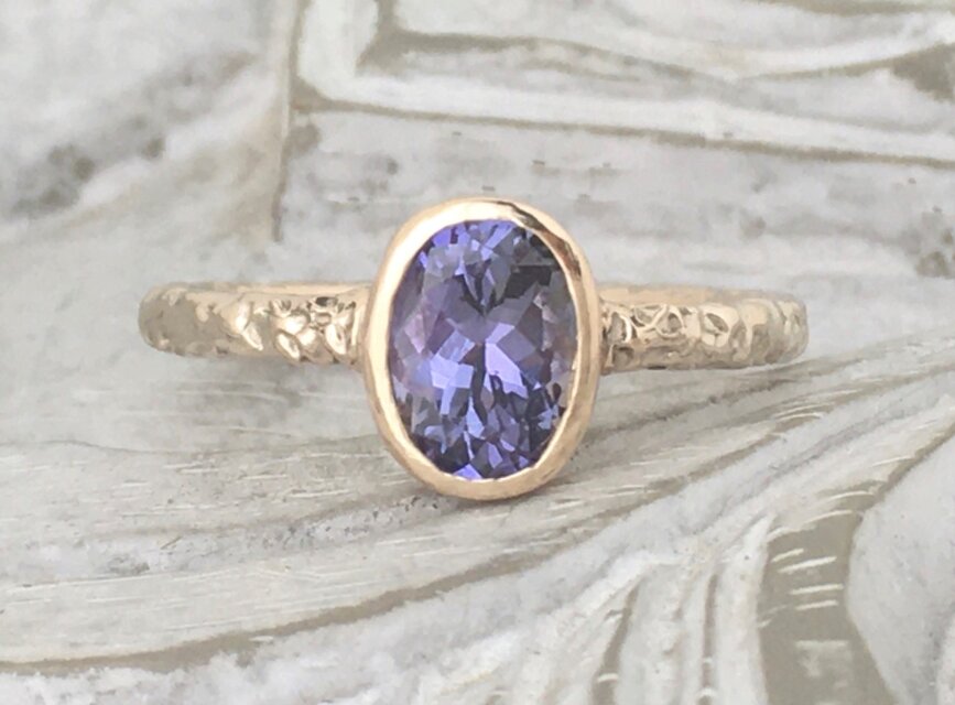 端正なオーバル型にカットされた存在感あるタンザナイト。