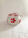 半磁器土でロクロ成形後、紅梅の絵柄を施して