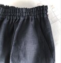 黒のリネンパンツ『サイズフリー・オールシーズン・ウエストゴム・ポケット付き・ピンタック・脚長』
