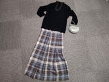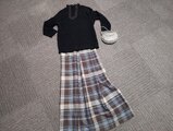 スカートは下からスポッと履くウエストゴムのデザインで、前面に大きなボックスプリーツ、
