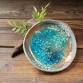 陶土の上にガラスを溶かした水たまりの様なお皿です。