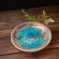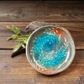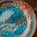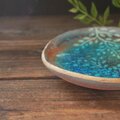 陶土の上にガラスを溶かした水たまりの様なお皿です。