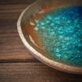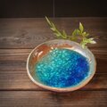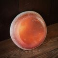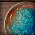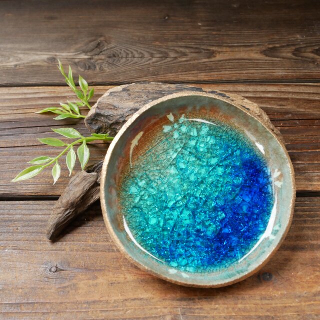 陶土の上にガラスを溶かした水たまりの様なお皿です。