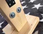 早速据えてみました。 木目が透けて見えるグレイの色も落ち着いた印象で良い感じです。 脚を木製のネジ込み式にしていただけたおかげで、脱着可能な上、足などぶつけてもあまり痛い思いをせずに済みそうで、これもまた良かったです。 ご対応も速く感謝申し上げます。 大事に使わせていただきますので、どうもありがとうございました。