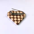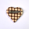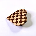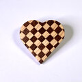 マホガニーと桧の市松模様の寄木をハート形にカットしてブローチにしました。