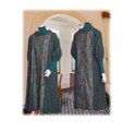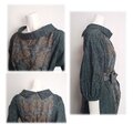 236 大島紬×紬リメイクレトロ衿Aラインワンピーㇲ(グリーン/蝶柄)