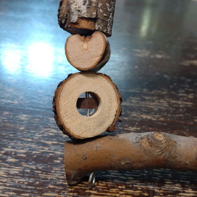 落ち枝から制作しており、中に芯としてステンレスワイヤーを通しています。