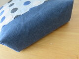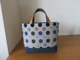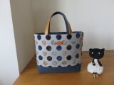 インポートのドット生地とバイオウオッシュ加工の8号帆布で別底仕立てのトートバッグを作りました。