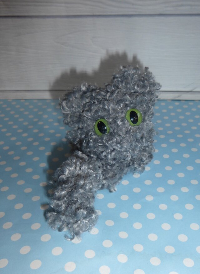 モフモフのプークレ糸で編んだ猫のシュシュです。