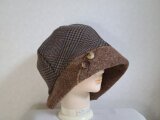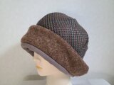 魅せる帽子☆新色!!ふんわり軽い♪上質ウール100%チェックとフェルトウールのあったかクロッシュ~ブラウン