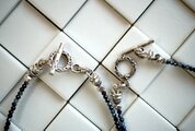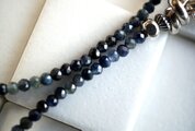 直径約2mmのボタン型サファイアをソフトタイプのワイヤーに通して作ったブレスレットです。いつもはシルク糸を使って石を結びながらブレスレットを作ることが殆どなのですが、今回はソフトタイプのワイヤーを使っています。