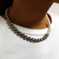 少し珍しいバイカラー(2色づかい)が特徴的なパールネックレス。