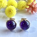 美しい濃いパープルカラーのアメジスト 1粒ピアス♪