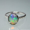 さまざまな表情と色彩が魅力的なオパールを、ボリュームを抑えたシンプルなリングに仕立てました。