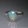 さまざまな表情と色彩が魅力的なオパールを、ボリュームを抑えたシンプルなリングに仕立てました。