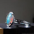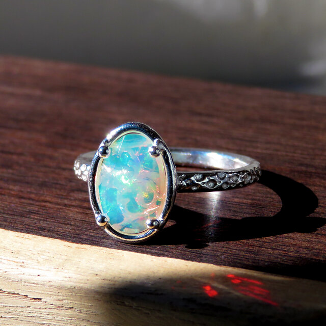 さまざまな表情と色彩が魅力的なオパールを、ボリュームを抑えたシンプルなリングに仕立てました。