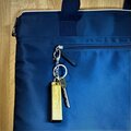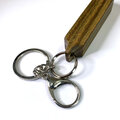 この特徴的な木の表情を表現するために直方体(四角柱)の形にしました。先端部を凸形にカットして、ここに穴を開けてキーチェーンを付けています。複数のキーが下げられるように大きめのリングのナスカン付きのキーチェーンにしています。
