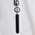先端部に大きめの穴を開けて、カン付きカツラ金具を埋め込むように固定しています。落ち着いた雰囲気のアンティークシルバーのキーチェーンを付けました。