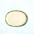 縁と裏側は緑色の透明感のある織部釉を掛けています。