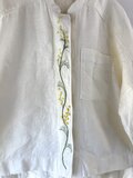 シャツの合わせにミモザの手刺繍を施した、春らしいオーバーブラウスです♪
