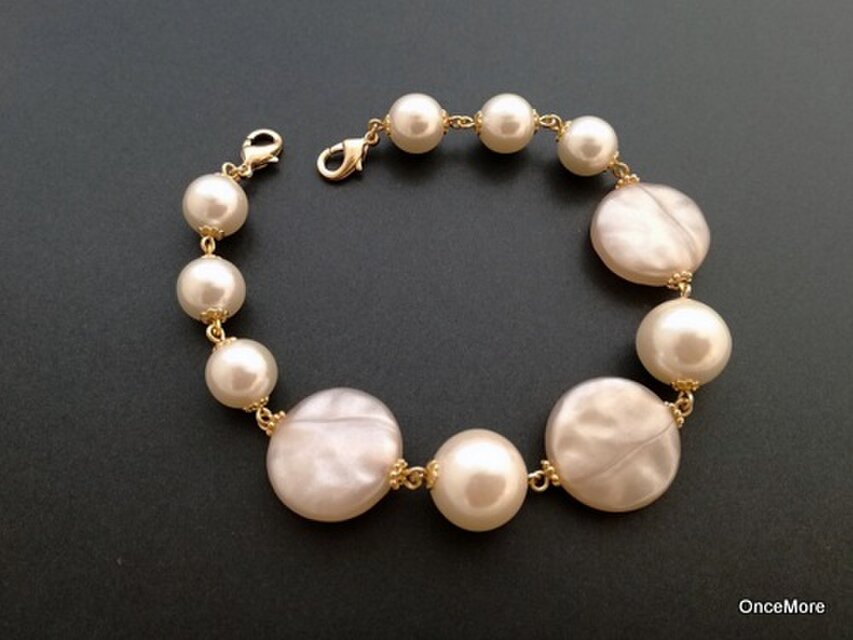 【ラスト1点】パール調平丸ビーズの羽織紐(Lサイズ)