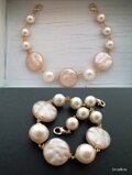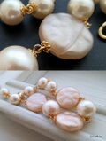 クリームカラーの平丸パールと丸玉2サイズを適量ずつ使いボリュームのある羽織紐を作りました。