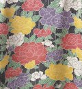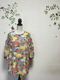 カラフルな牡丹の花柄が素敵な着物からパフ袖のチュニックをおつくりしました。