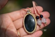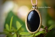 うっすらグラデーション★レインボーオブシィディアン マクラメペンダント 72