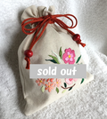 生成りのリネン布地にお花の刺繍を施した巾着です。