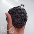 グレーの糸、メタルブラックのビーズと口金でシックに仕上げました。