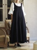 たっぷりとしたボリュームのあるシルエットがかわいいマキシ丈のテントラインワンピース。