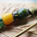 アンティーク 管玉 緑 & ブラックシェブロン + ヴェネチアンシードビーズ ブローチ 百世 momotose(西)