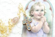 こちらのロザリオに使用しているクロスにはお祈りをする子どもの絵が描かれています。