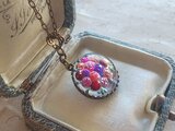 アンティーク Colorful薔薇 Glassインタリオ ネックレス