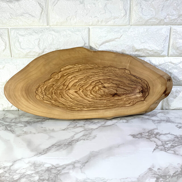 長寿のオリーブウッドは生育する環境で複雑できれいな木目ができます。カッティングボードとしてだけでなくアンティパストやスイーツなどをのせるサービングボードとしても面白い雰囲気が演出できます。