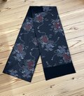☆ 大島紬 墨黒に花柄のショール 着物リメイク♪
