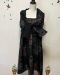 墨黒に赤の花柄の素敵な大島紬の着物から